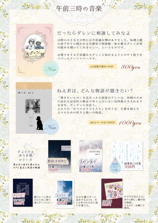 今後の予定などはまったく立っておらず、直接お手にとっていただけるチャンスは残念ながらないのですが、既刊を含めたすべての作品は