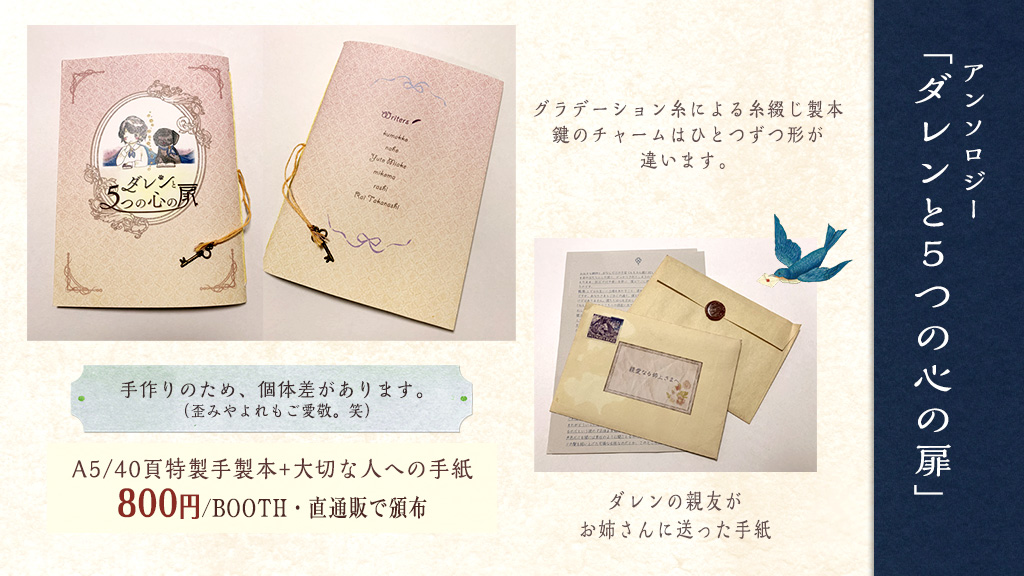 「ダレンと5つの心の扉」印刷所に頼む本では出来ないことをしよう、と手仕事にこだわって作りました。