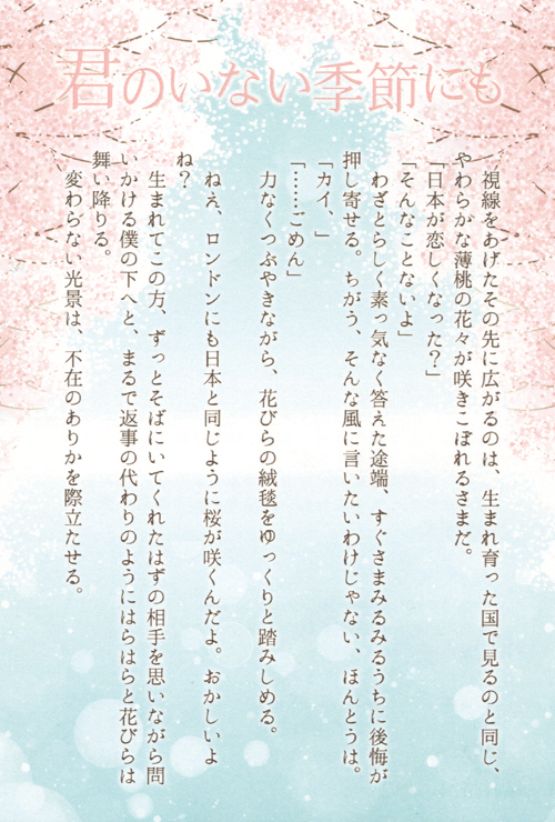 わたしは春号にて、「ジェミニとほうき星」の祈吏とマーティンのお話を書かせていただきました。