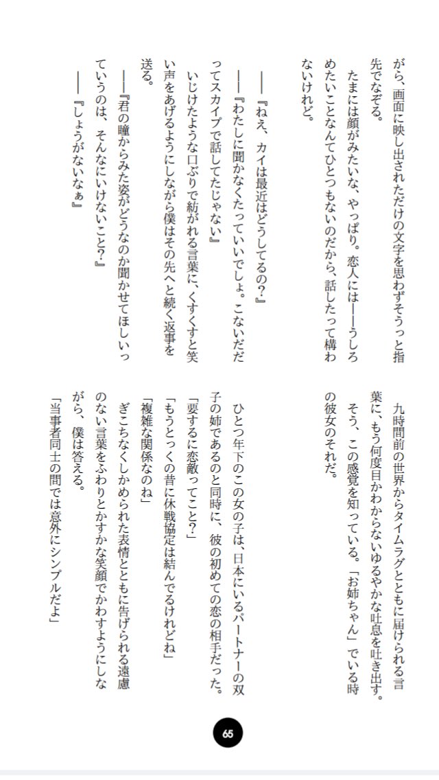 わたしは「ジェミニとほうき星」のスピンオフ、『きょうだい』になろうと誓い合った離れて暮らす兄と妹、マーティンと祈吏がふたりで桜を見に行くお話を書かせて頂きました。