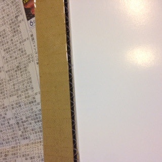 ポスター一枚はペラくて心もとないので、おうちにある段ボールをポスターの幅に合わせてカット→裏に両面テープを貼った支え板を補強用に作ります。
