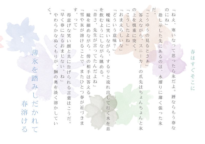 いまの自分が周くんと忍を通してみていること、書こうとしていることの原点には海吏が見せてくれた景色があるので、忍を紹介してくれた(笑)海吏には心から感謝しています。