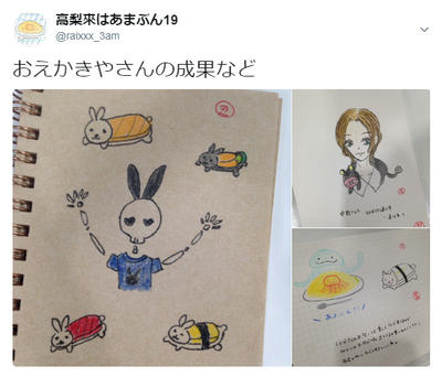 忍「あまぶん終わったらみんなでお寿司だよって名札にもお寿司描いたんだよ」おえかき屋さんも何枚か描かせていただきました。