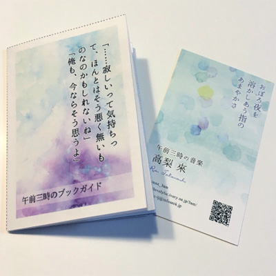 おしゃれカフェにBLはどうなのだろう、さすがにR18はなーと気がひけたので(笑)前週の金沢で新刊として出したピアニスト、看板アイテムのジェミニ、残り枠に庫内灯と当サークルのW宣伝として無配本をめいっぱいぶっ込むという布陣で挑んだのですが、ふたを開けてみればピアニストが完売! わぁわぁ! 庫内灯⇔午前三時の音楽も見本誌含めて完売! ジェミニもぶじ旅だってくれました。わぁい、うれしい~。