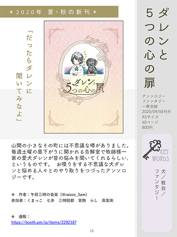 秋に出すアンソロの告知フライヤーを頒布できる場所ができてすごく助かりました。(アンソロの話は後述します)