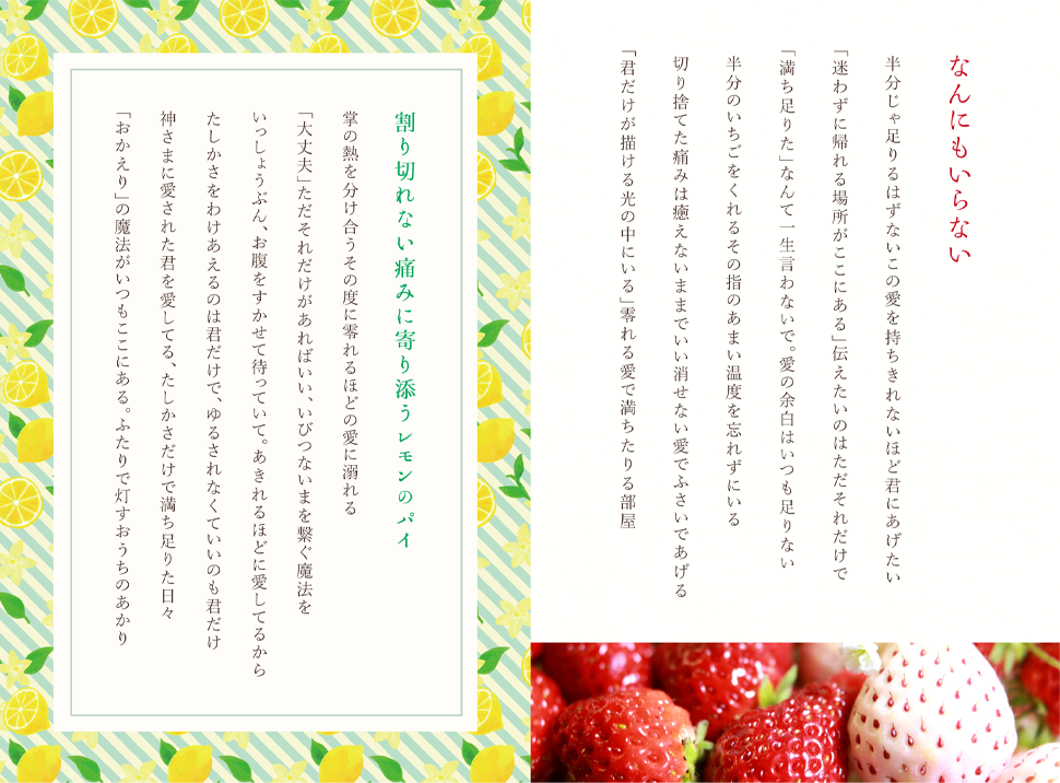 人生を豊かにしてくれるすばらしい作品に出会えたこと、「ファン活動」という形で自分が出会ったものへの感謝や愛情を形に残せたこと、あたたかい人とのつながりをもてたこと、すべての奇跡を心からうれしく思っています。