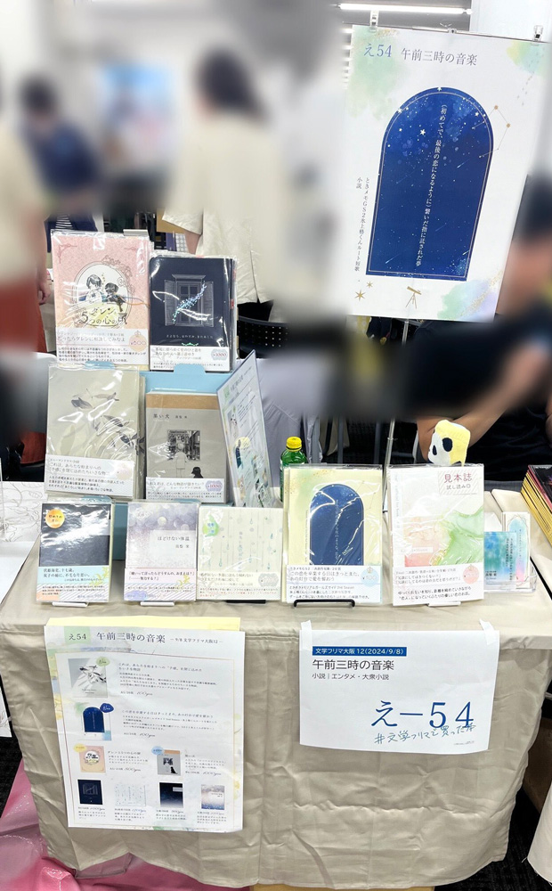 水面下では二年ほど前から匂わせていた(笑)合同誌の内容をブラッシュアップしていたのですが、予告編の冊子を文フリ大阪で発行出来たことで、ずっと向き合い、磨き続けてきた作品を少しだけみなさまにお披露目できたのがとてもうれしかったです。
