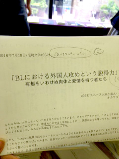 恐ろしくストライクゾーンの狭いBL知識の薄いわたしに反して商業・創作BLにめちゃめちゃ熱いおふたりのBL談義が面白すぎて思わず実況するわたし。喋り足りないのでまたふのつく女子会しましょうね。今度は人数も増えるという噂ですよ。えへへ。