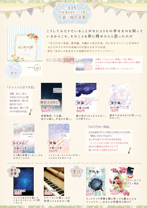 午前三時の音楽は第五回文学フリマ大阪に参加します。