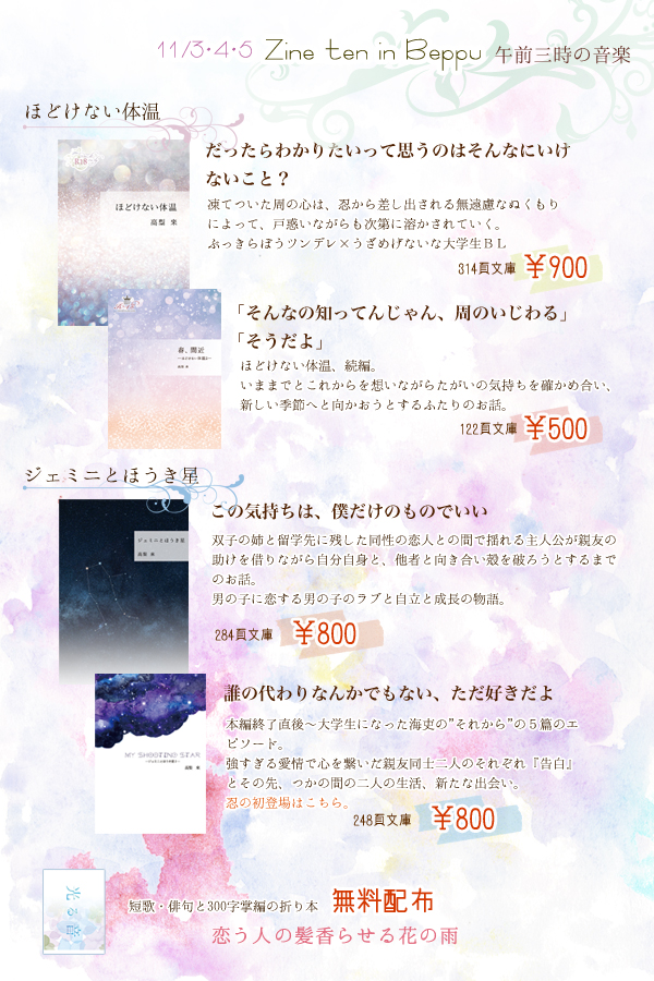 11月3日~5日、大分県別府市にて開催されるこんぺき出版さん主催の自主制作同人誌=Zineの委託販売イベント、