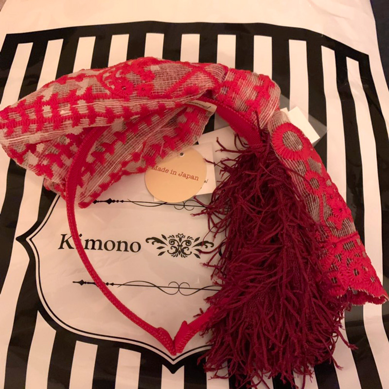 これはまどさんとお別れしてからキモノグラースさんで買ったばら色の帽子のカチューシャ。