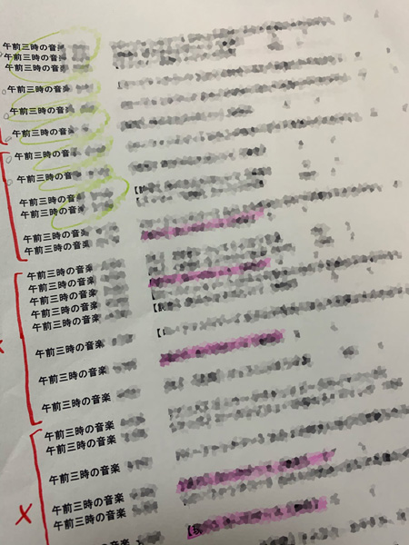 1シートに4枚仕分け表をプリントアウトするので、まずは4つずつサインペンで仕切ります。