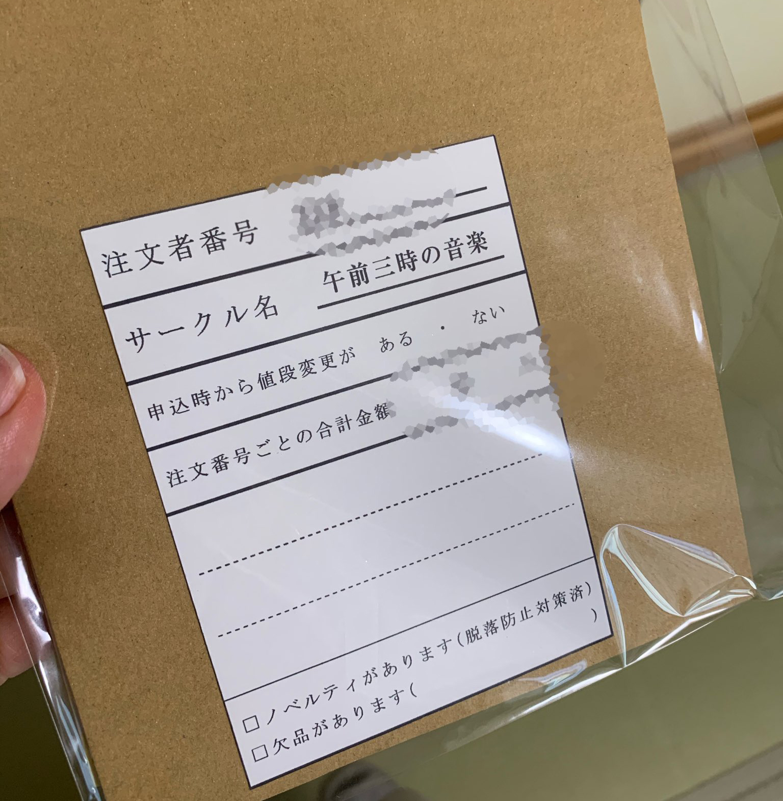 受注内容を確認しながらPDFに受注番号、サークル名、値段などの必要事項を打ち出してシール用紙にプリントアウト。