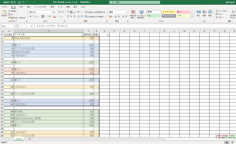 まず最初に準備会からのエクセルシートを開いて見やすいように