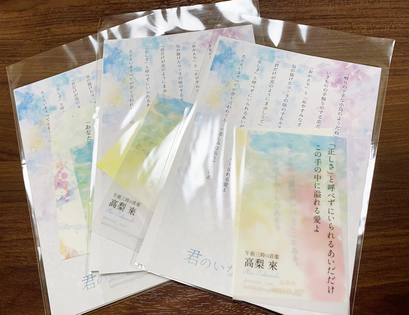 せっかく注文していただけてうれしいので特典を用意しました。その1はあましのの紙。(あたらしいお話)結局全員に