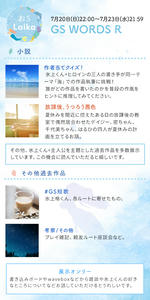 夏祭りのようなウェブオンリーイベント。こちらはときメモGSシリーズ全作が対象かつ、主人公と素敵な男の子のお話だけではなく、BL/GL/夢なんでもOK、文章主体作品が対象のお祭りでした。