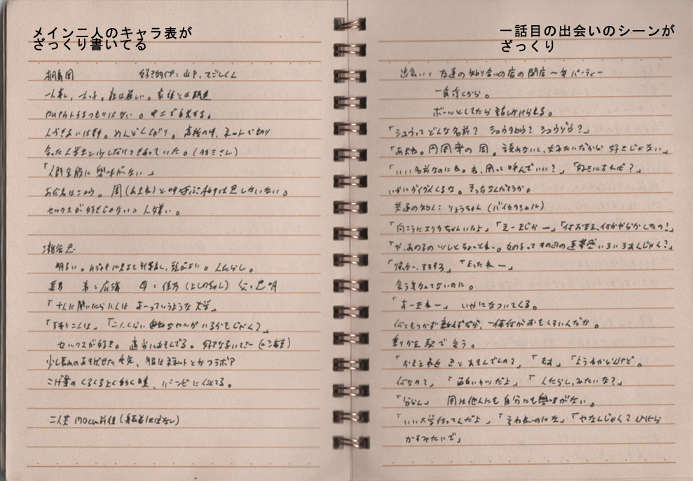 右:冒頭の二人の出会いのシーンでかわすやり取りをざっくり書いてある