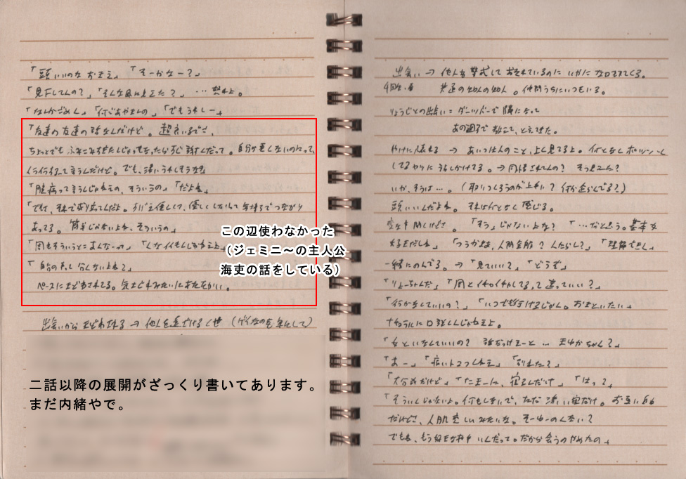 (右ページにはその後の話の流れを1ページ使ってざっくりメモしてある)