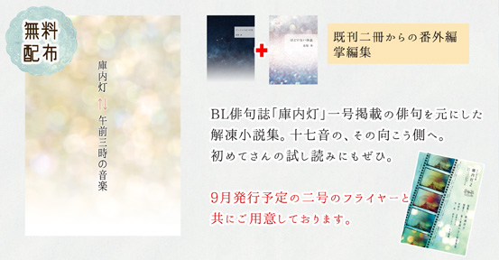 「BL? 俳句?? って方にこそ是非手にとって頂きたい、可能性が優しく開かれてる素敵な一冊です。秋に第二段がでます!(ニコニコ)」
